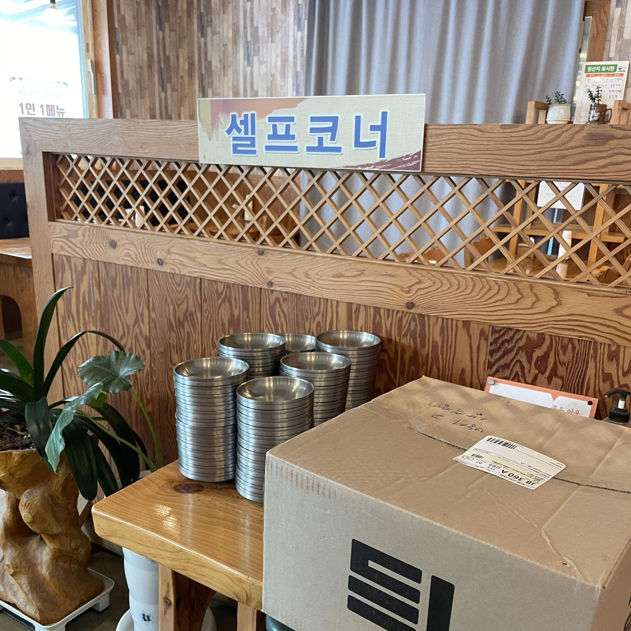 셀프코너에는 앞접시만이 자리를 지키고 있다 ㅋㅋㅋㅋ